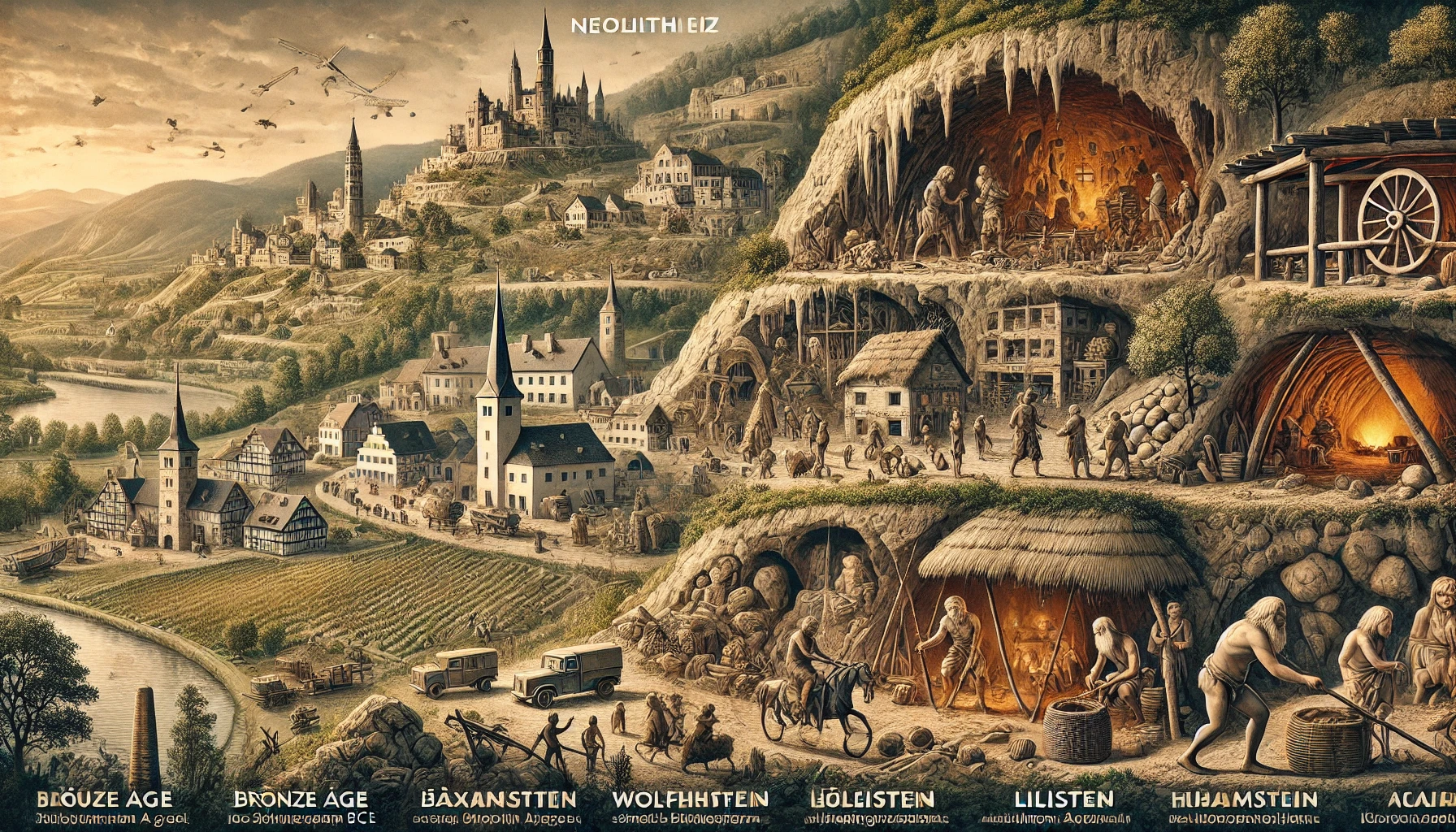 Lass uns gemeinsam mit dem interaktiven Zeitstrahl in die Vergangenheit eintauchen und entdecken, wie die Menschen hier lebten, bevor die imposanten Felsen zu deinem Wanderparadies wurden.
